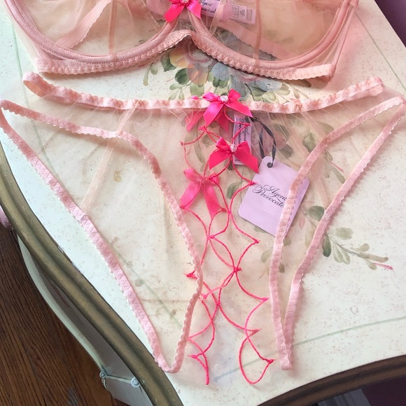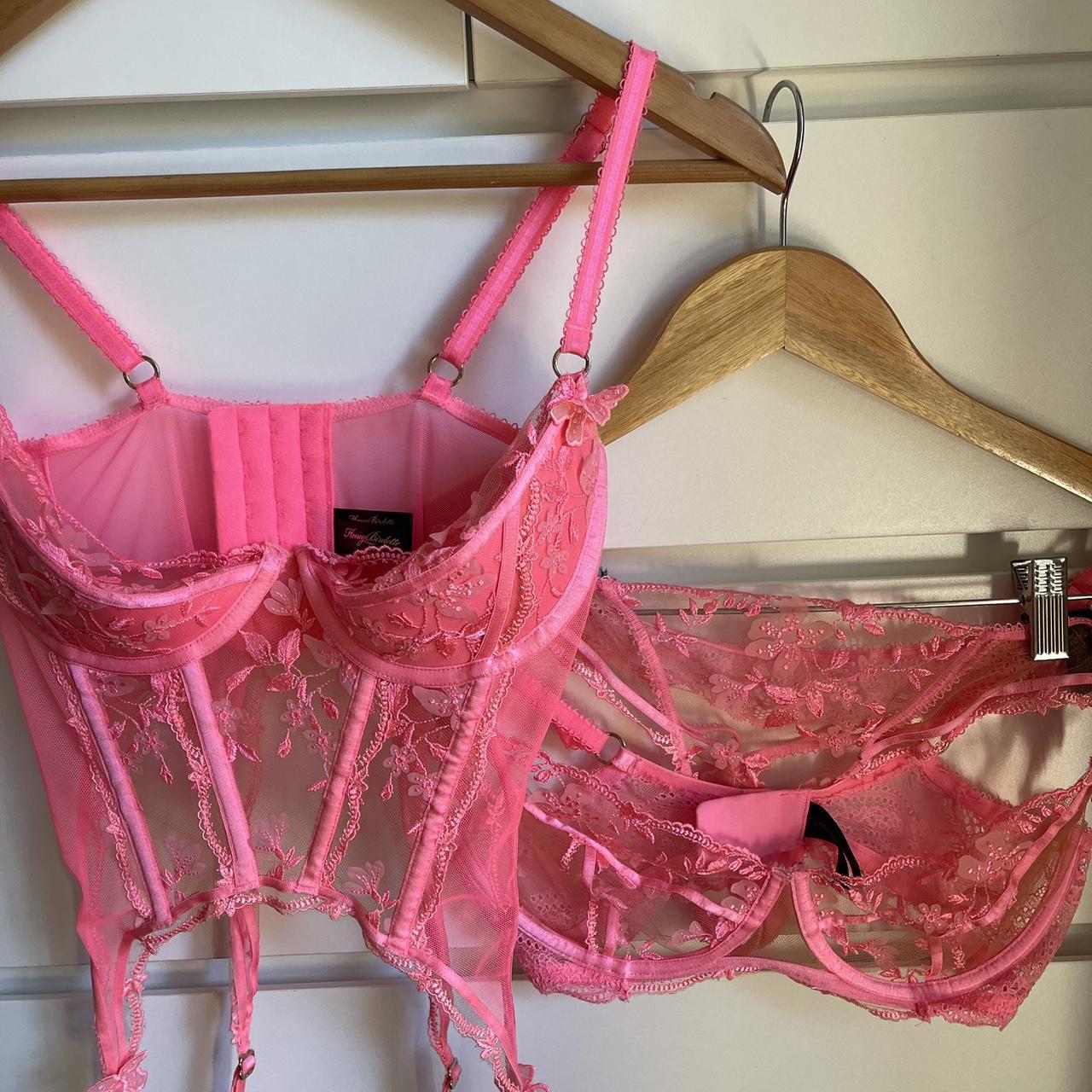 Sabrina pink Honey Birdette Bra thong and bustier Depop
