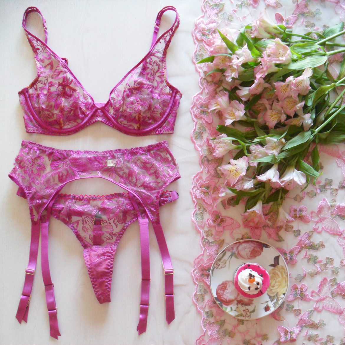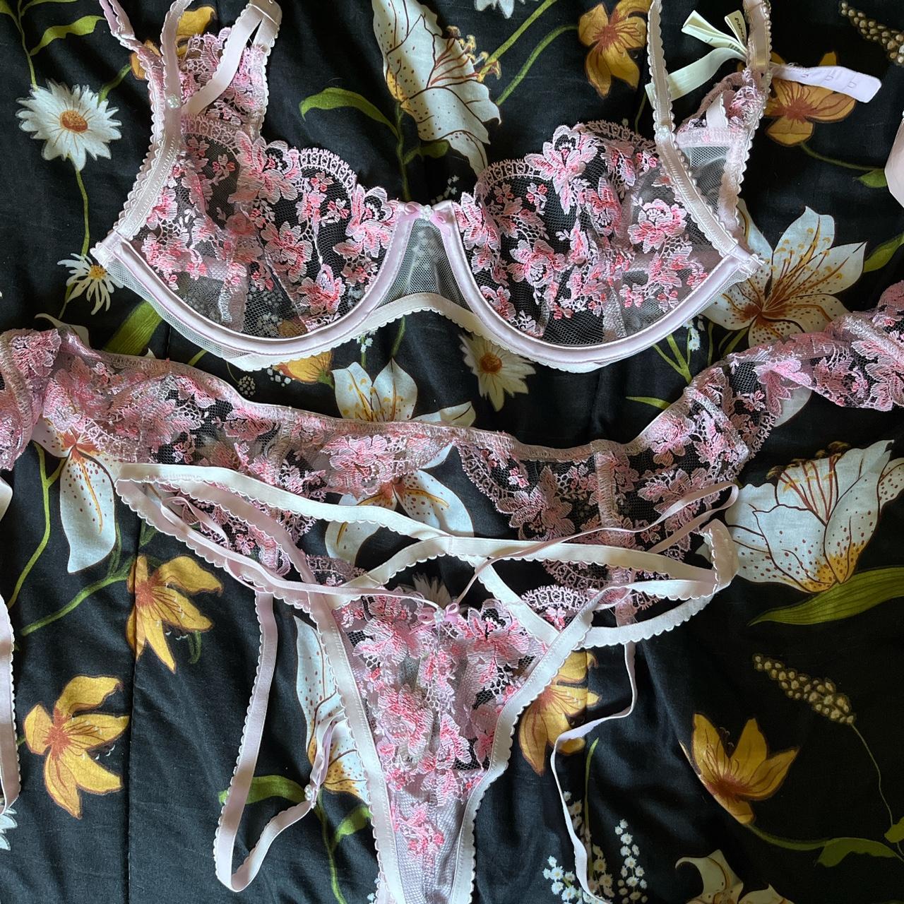 Pink Flower Lingerie Set Etsy