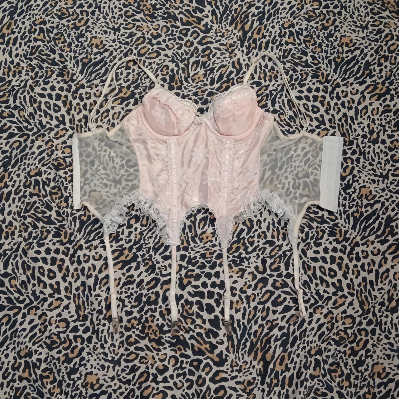 True Vintage Baby Pink and Flower Lace Bustier with Depop