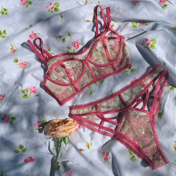 Pink Floral Pattern Bralet Set Mesh Lingerie Set Sheer Bra Etsy