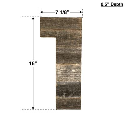 Rustic Large 16 in Weathered Gray Decorative Monogram Wood Number One
