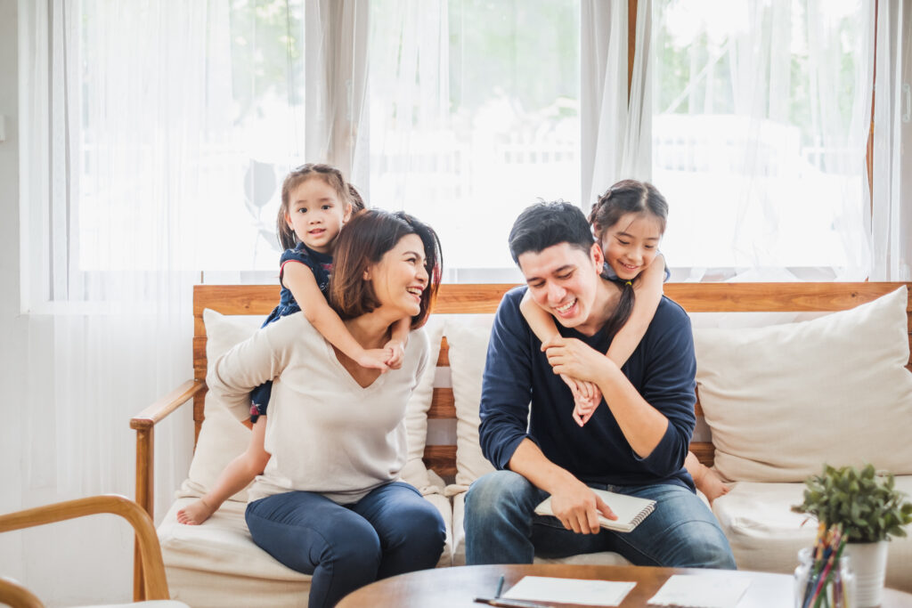Premium Photo Happy asian family enjoying weekend time relax on couch