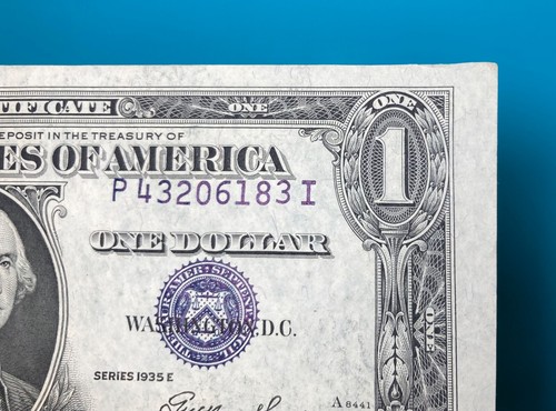 1935 E Silver Certificate Blue Label Seal One Dollar Bill