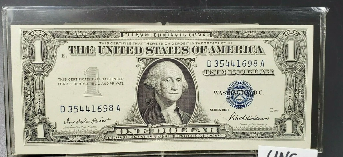 1957 $1 One Dollar Silver Certificate Blue Seal Uncirculated Conditio