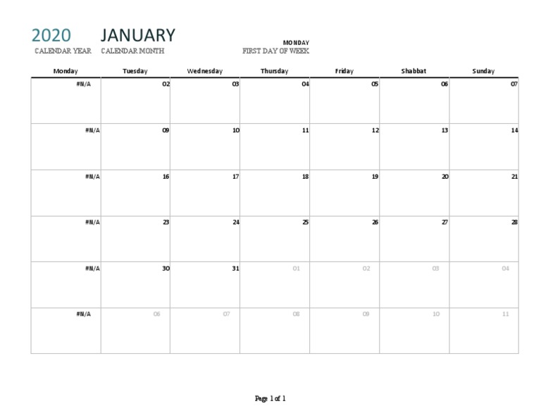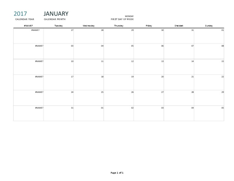 1 Year Calendar Template Excel Excel calendar template Excel