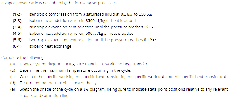 Solved A vapor power cycle is described by the following six Chegg com