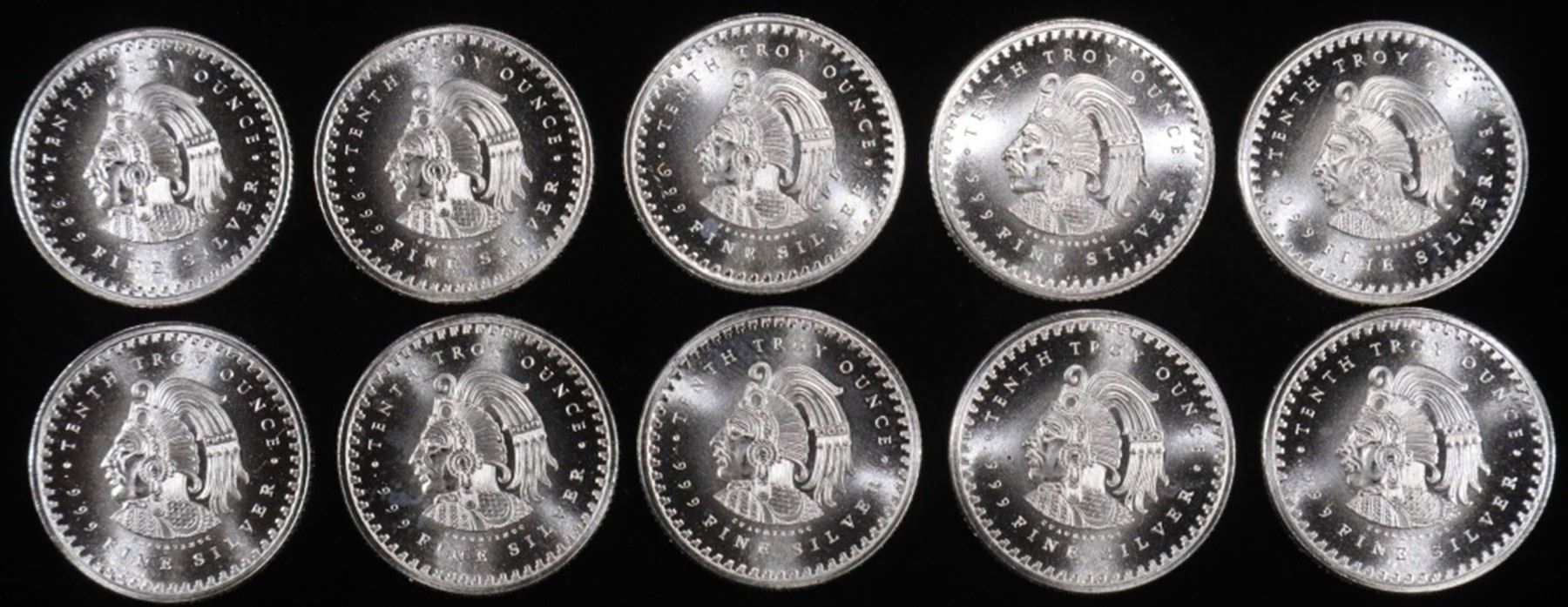 (10) 1/10 OZ 999 SILVER AZTEC CALENDAR ROUNDS