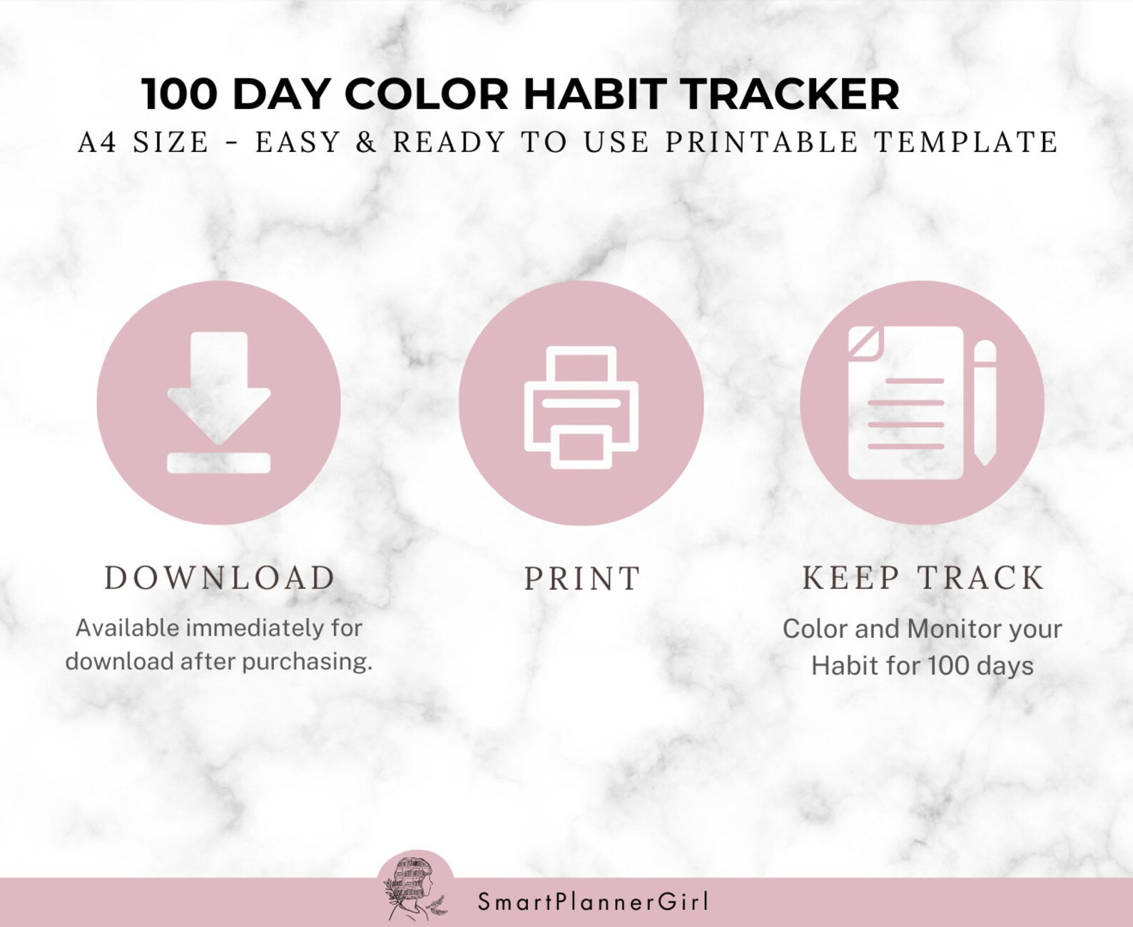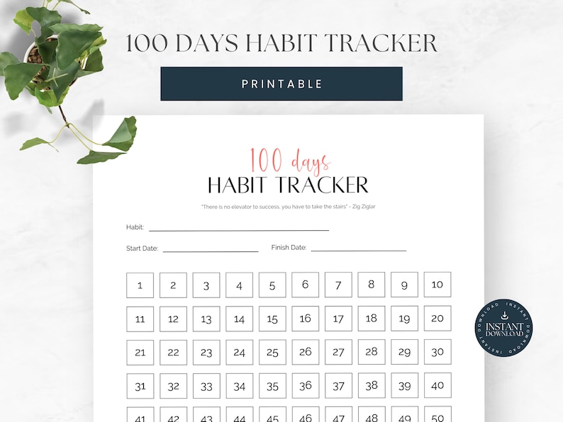 100 Day Habit Tracker Printable PDF Digital Planner Daily Goal