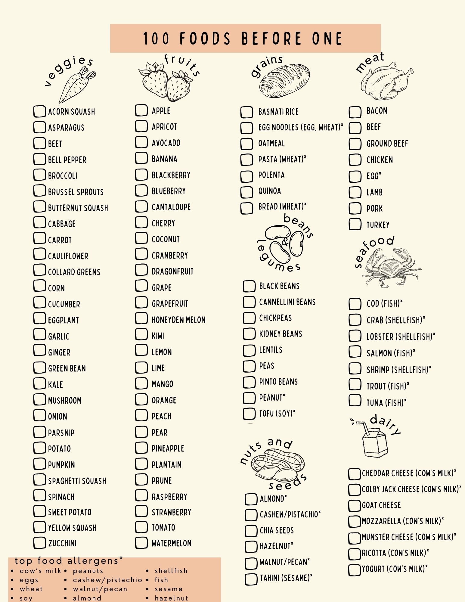100 Foods Before 1: Printable Checklist and Guide Once Upon a Farm