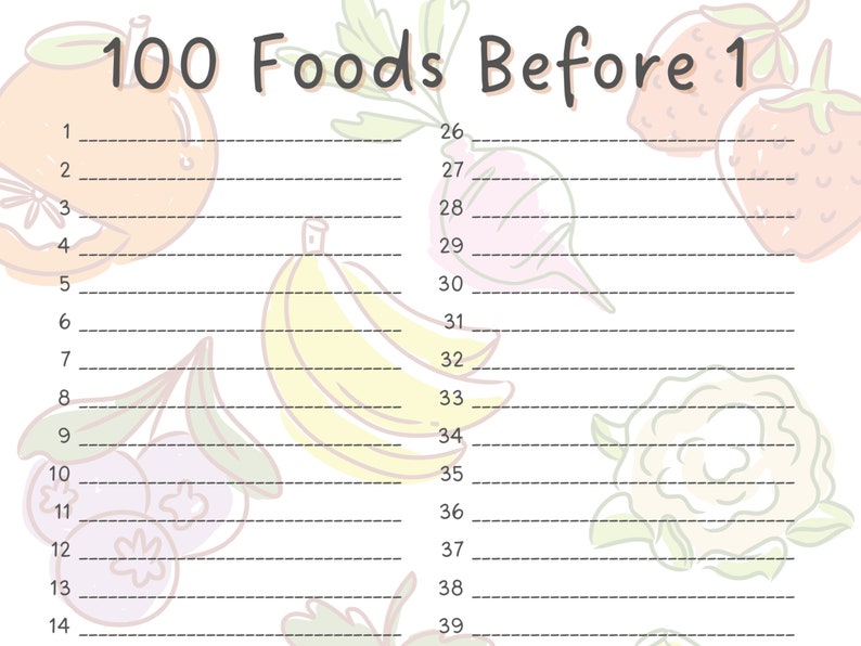 Here are some of the images for 100 Foods Before 1 Printable that we found in our website database.