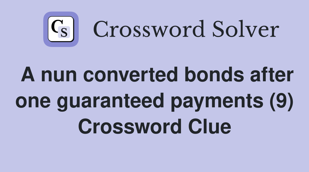 A nun converted bonds after one guaranteed payments (9) Crossword