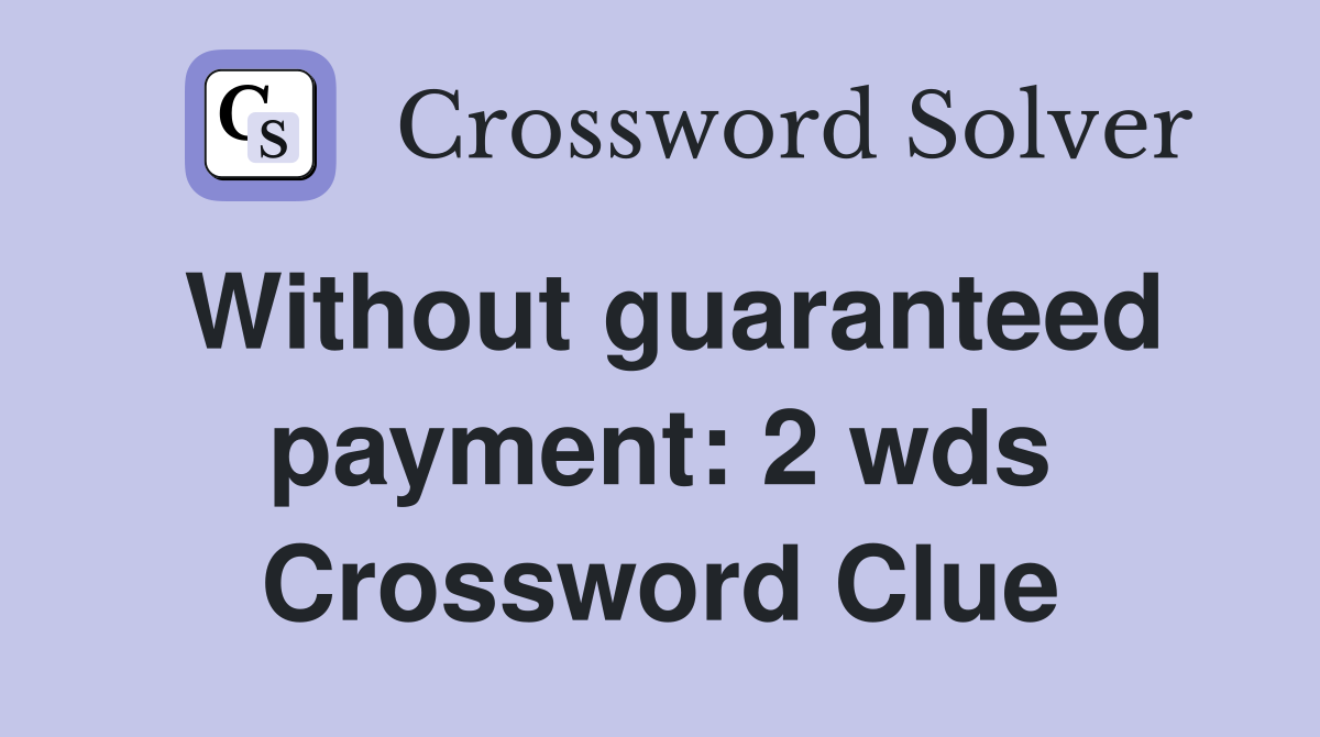 Without guaranteed payment: 2 wds Crossword Clue Answers Crossword