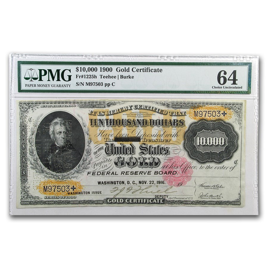 Buy 1900 $10 000 Gold Certificate CU 64 Net PMG APMEX