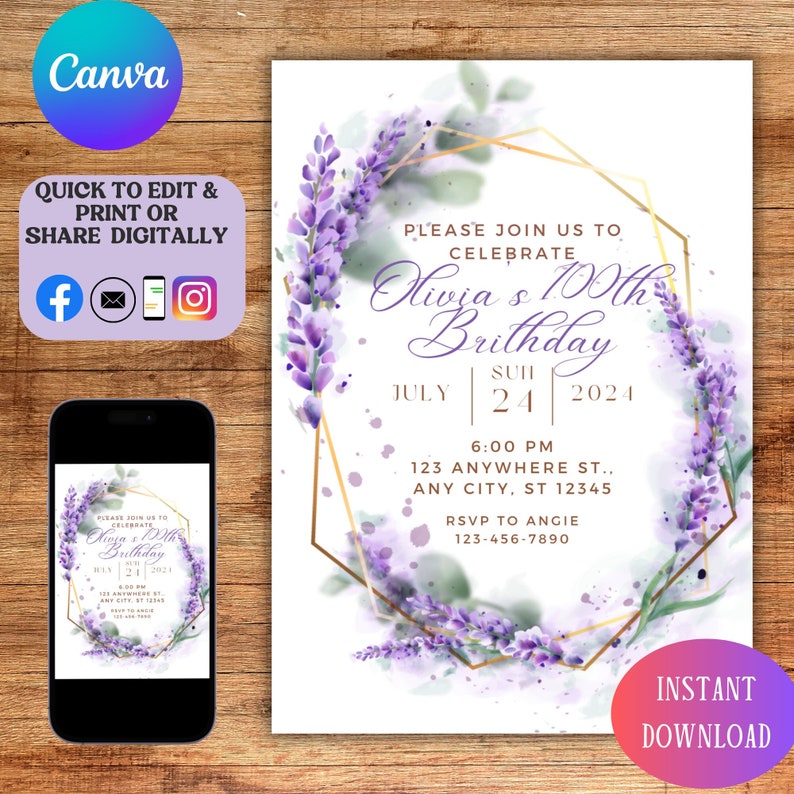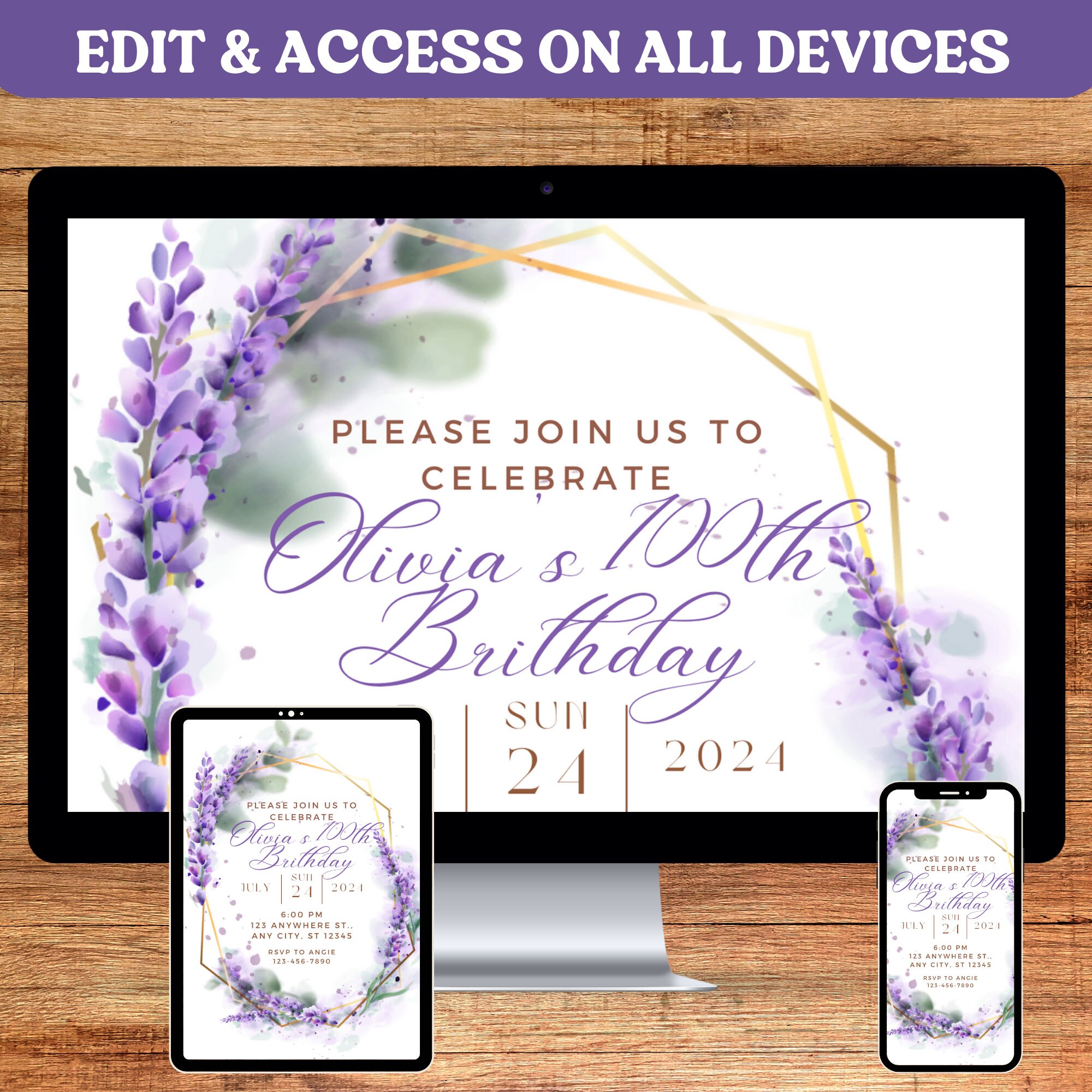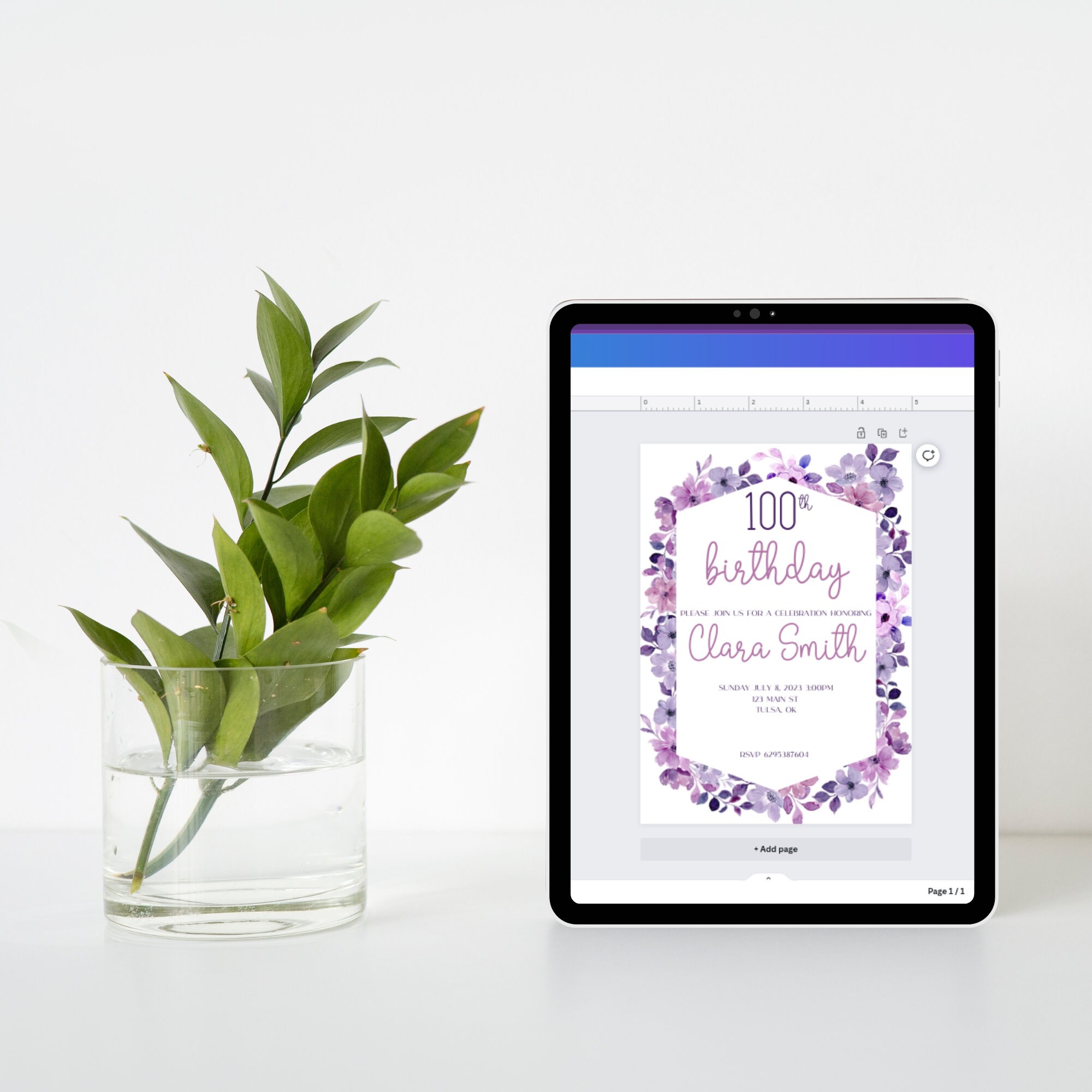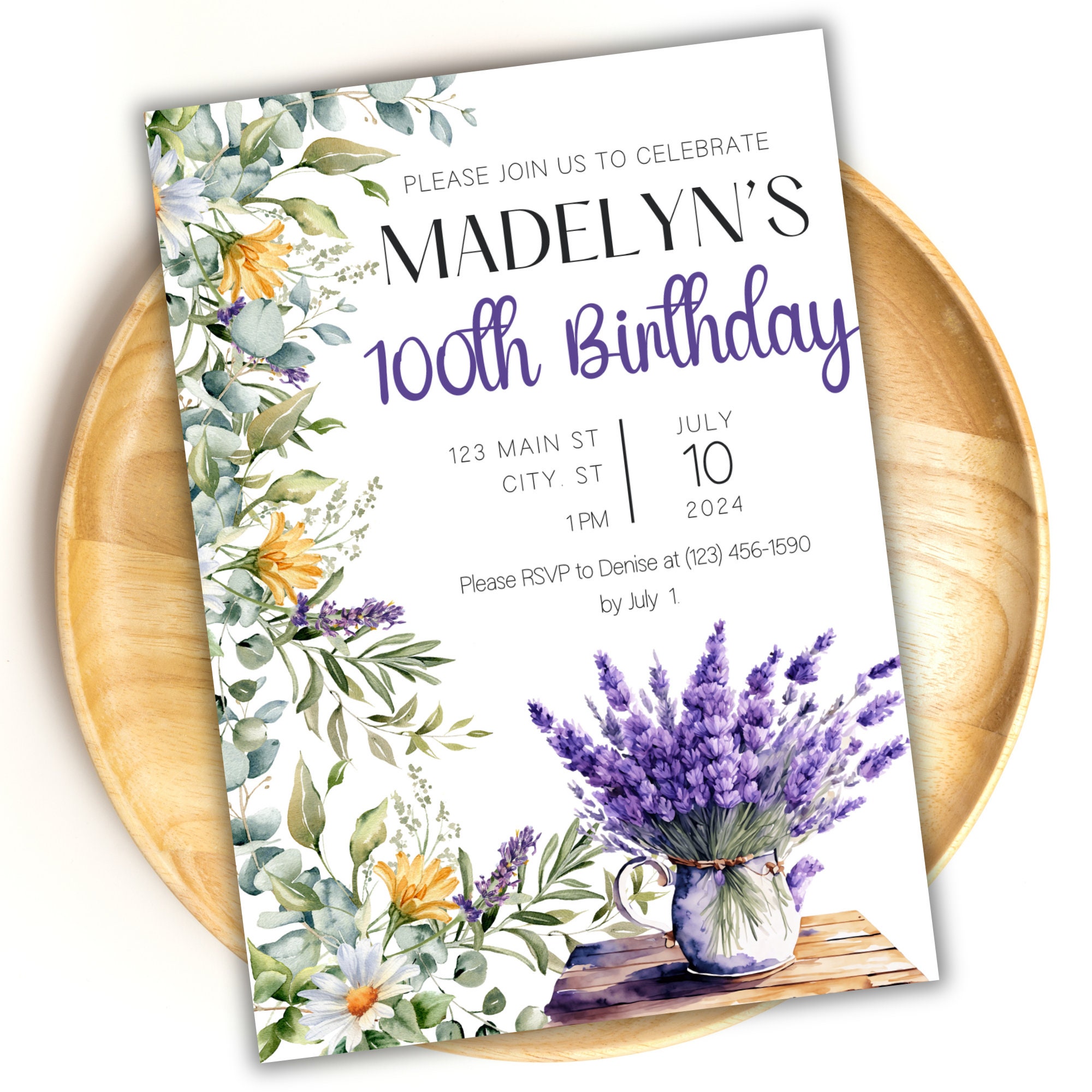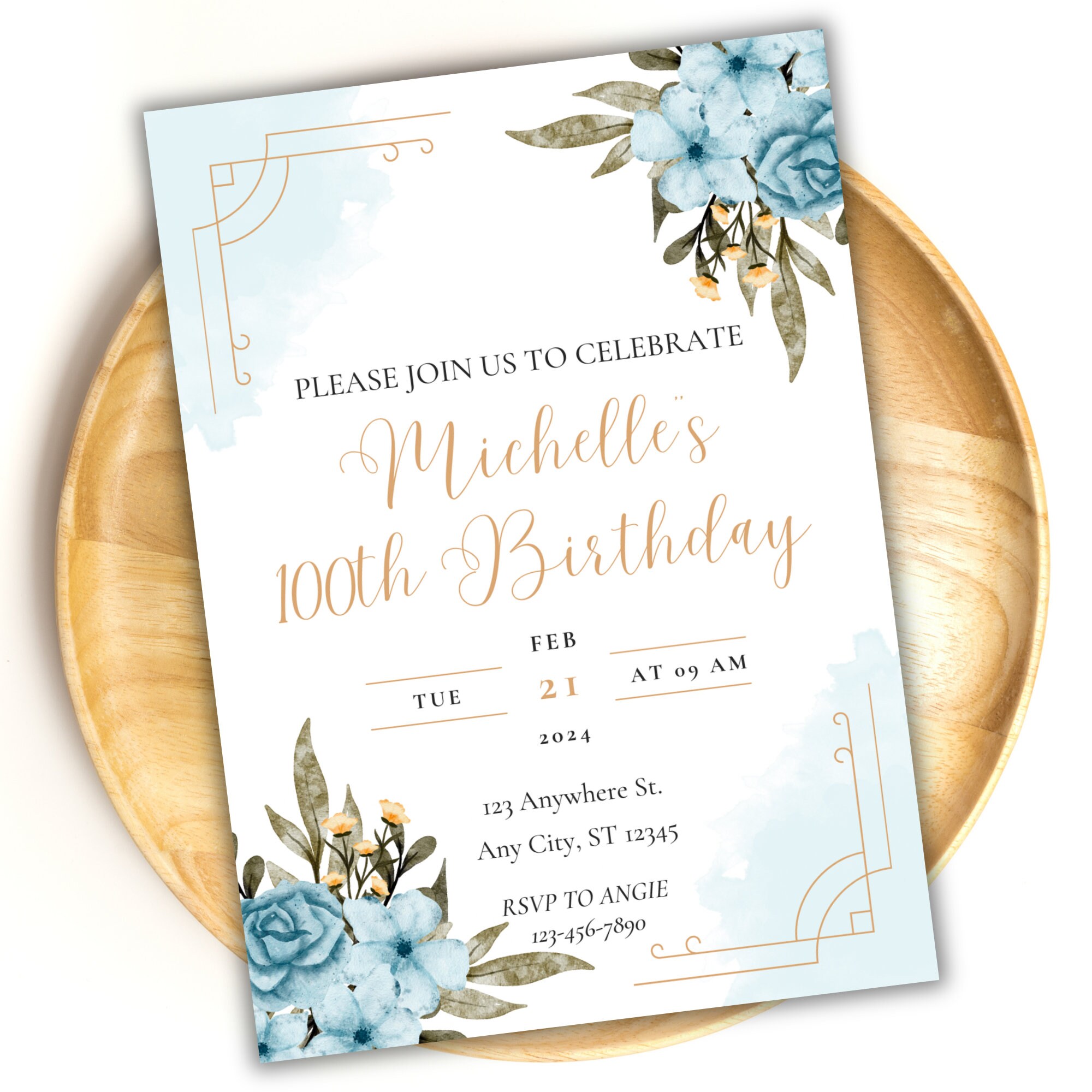 Editable 100th Birthday Invitation Floral Women Birthday Etsy