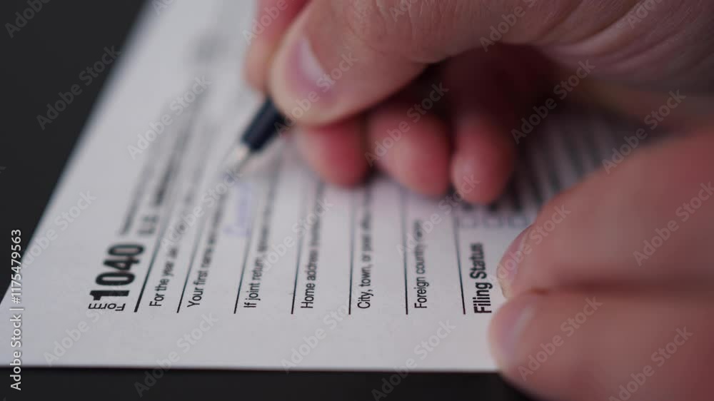 Man Filling In The Tax Form 1040 for 2024 Year Person Calculates of