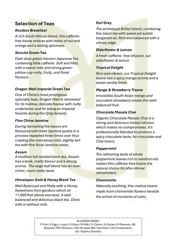 Mallory Court Hotel afternoon tea menu