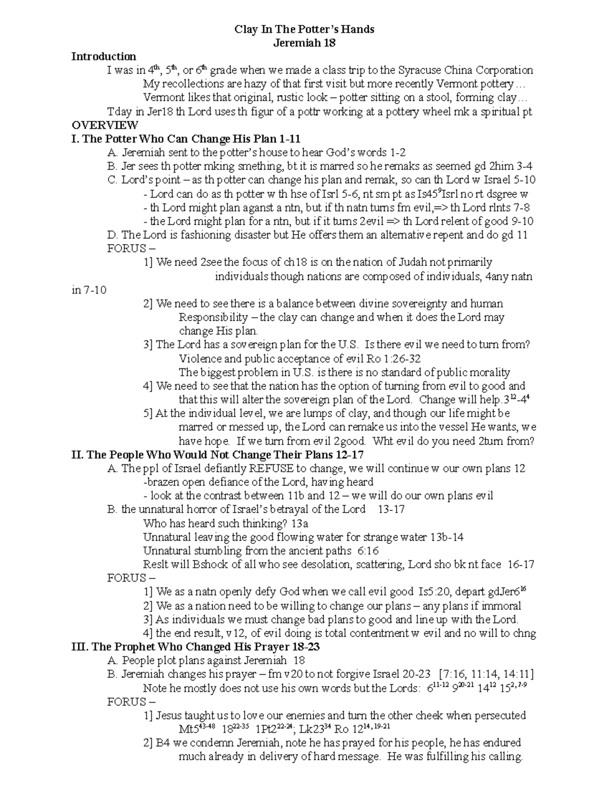 Clay in the potter easy Clay In The Potter s Hands Jeremiah 18