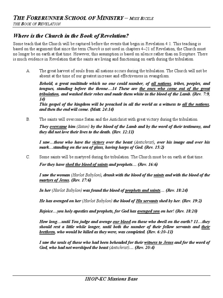 Where Is The Church in The Book of Revelation PDF PDF Great