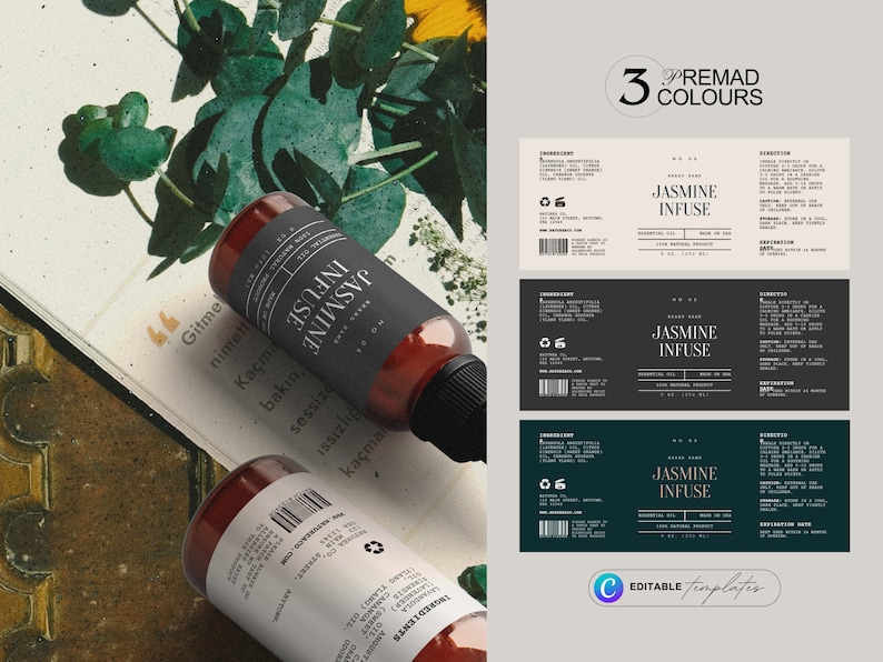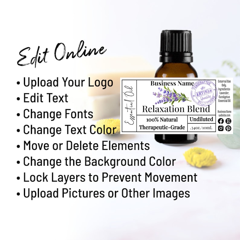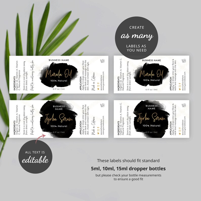 10ml Dropper Bottle Label Template Editable Essential Oil Etsy