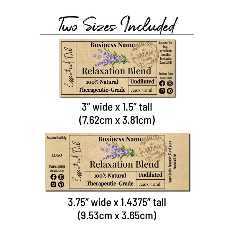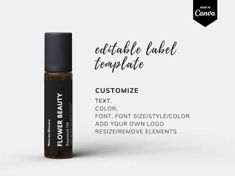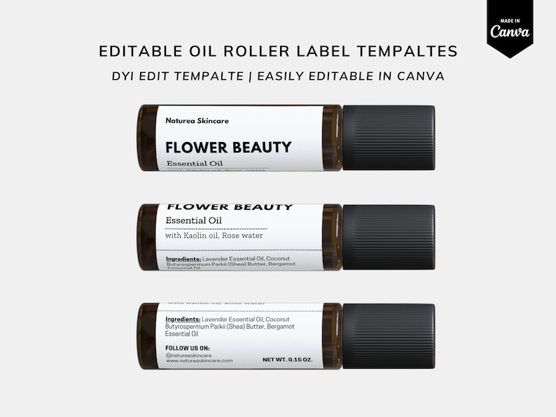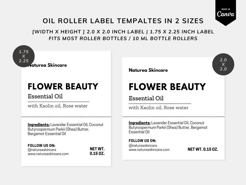 10ml Roller Bottle Label CANVA Editable Template 2x2 Essential Oil