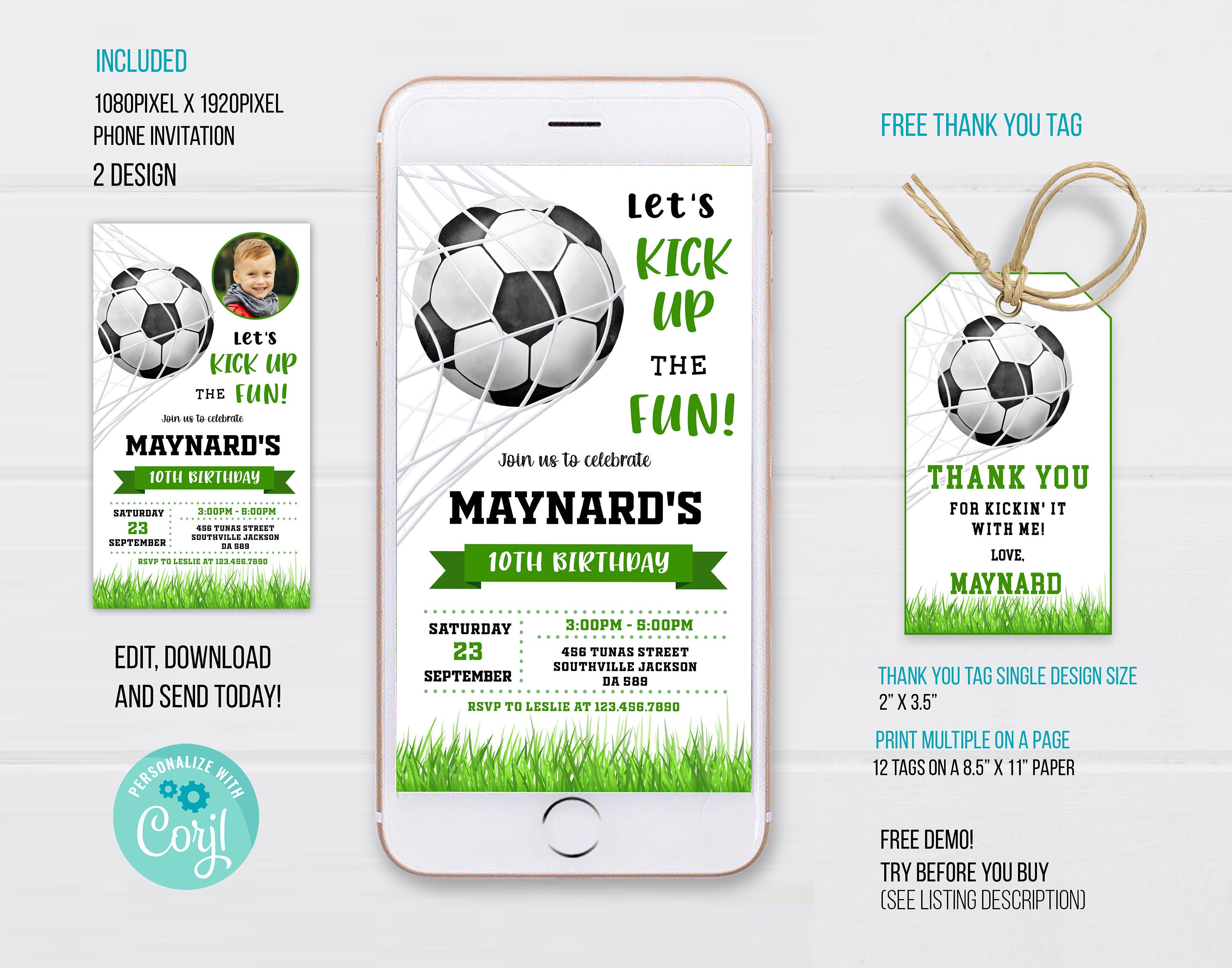 Soccer Electronic Invitation Template Soccer Birthday Phone Etsy