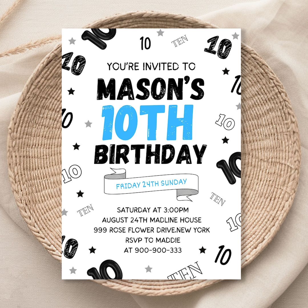 10th Birthday Invitation 10th Birthday 10th Birthday Invite 10th