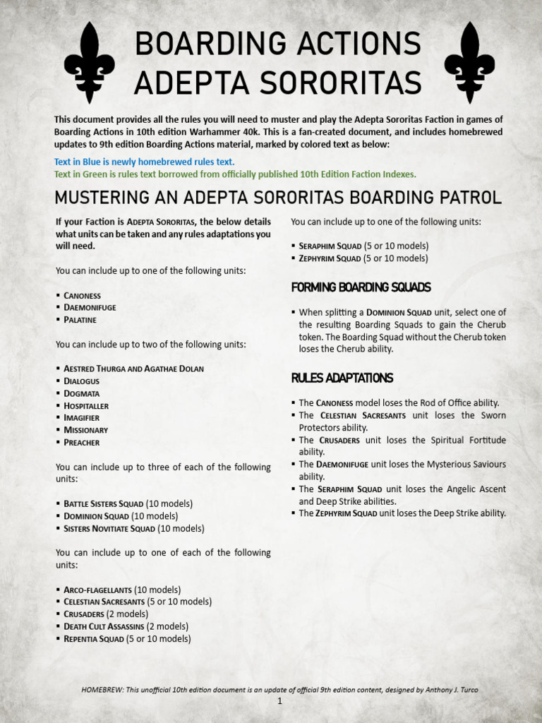 Boarding Actions 10th Edition Adepta Sororitas PDF Military
