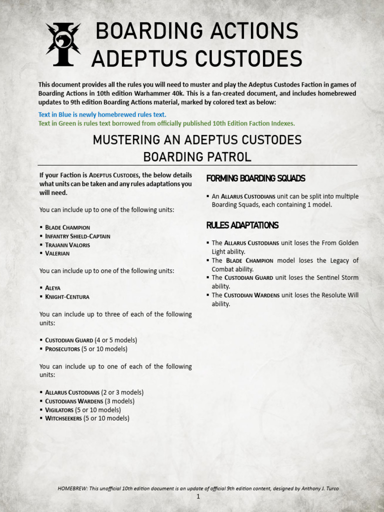 Boarding Actions 10th Edition Adeptus Custodes PDF Battles Warfare