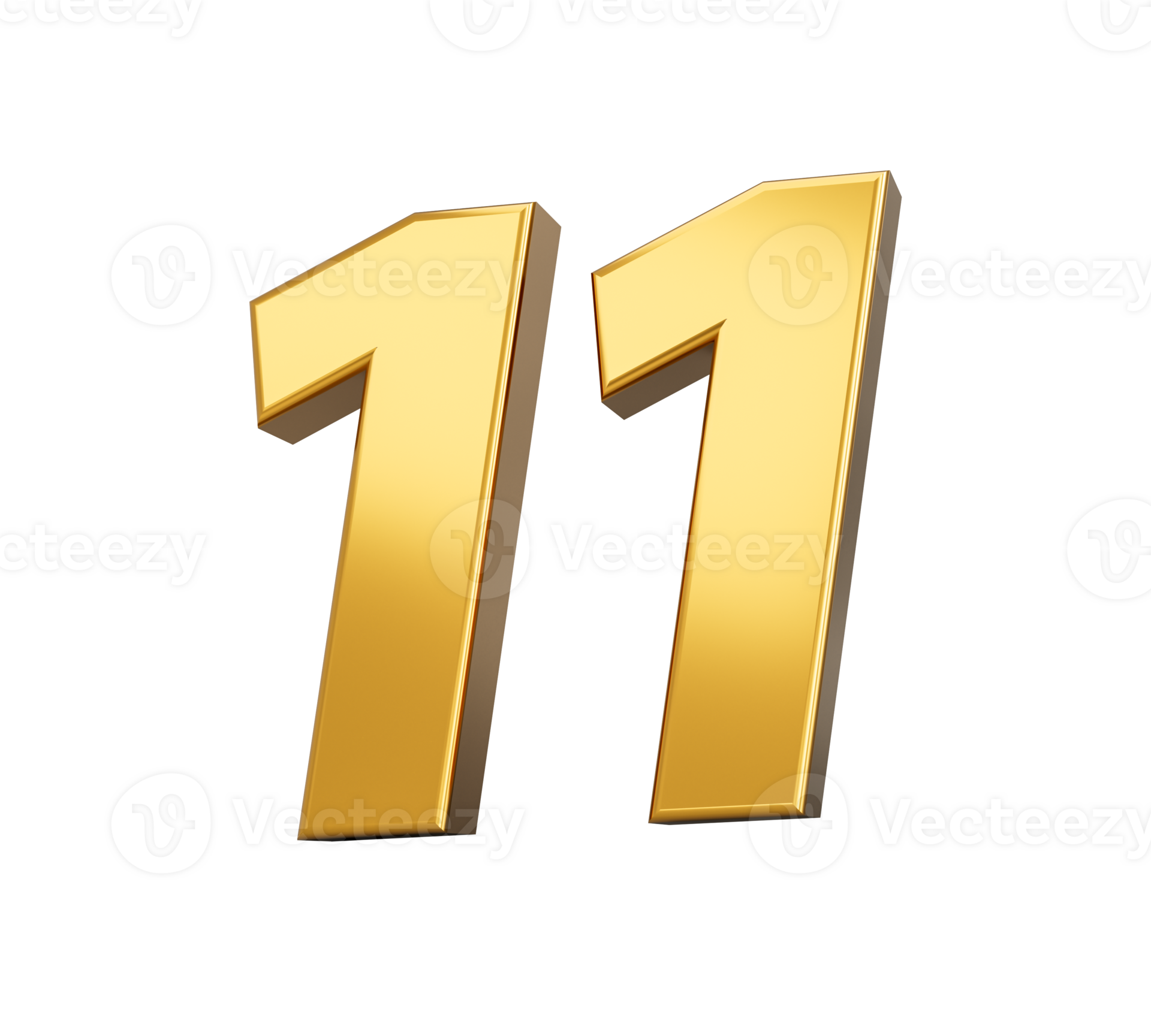 Premium Photo 3d illustration of golden number 11 or eleven isolated