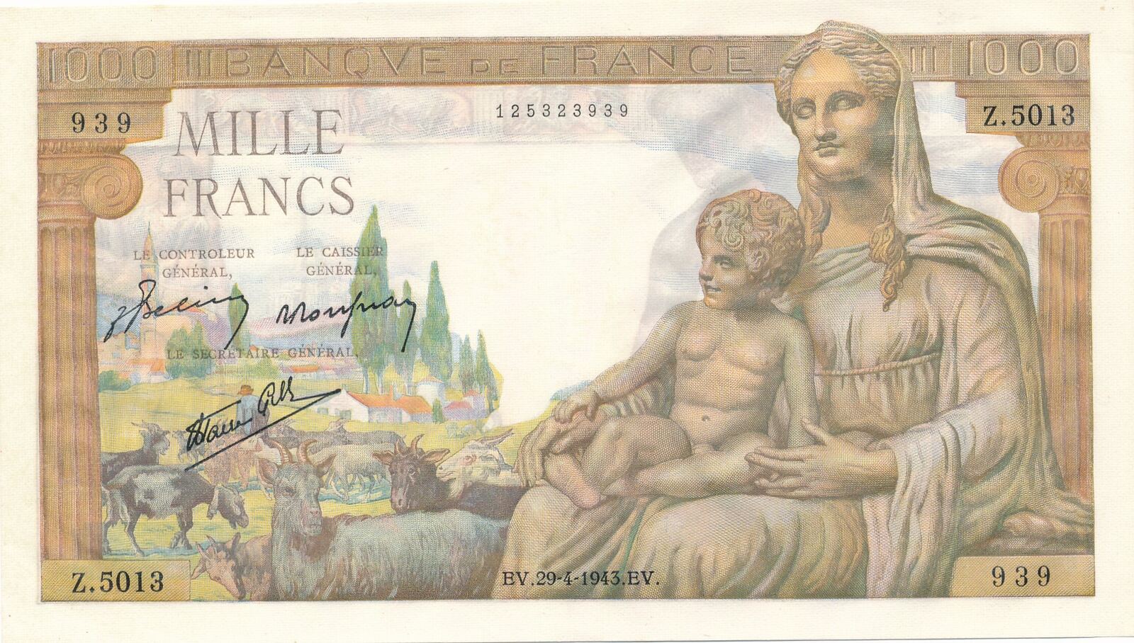 Frankreich 1000 Francs 29 4 1943 unc MA Shops