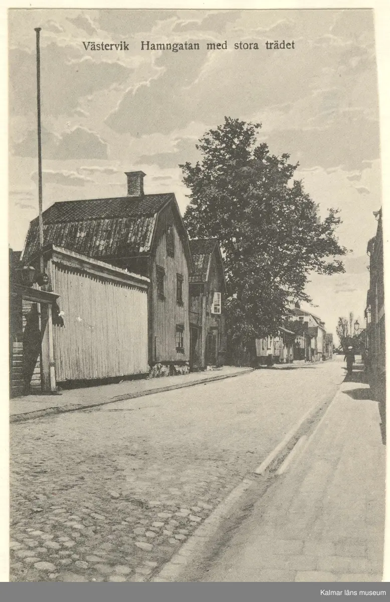 Vykort med motiv från Hamngatan i Västervik Fotot är retuscherat