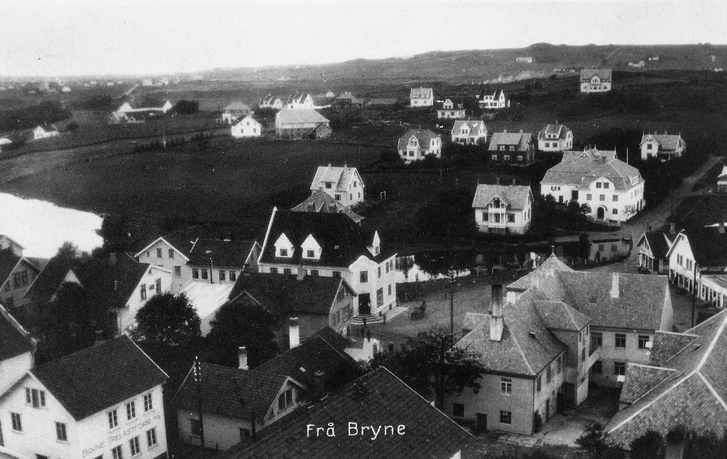 Frå Bryne sentrum ca 1930 Framme til høgre ser vi Jæren