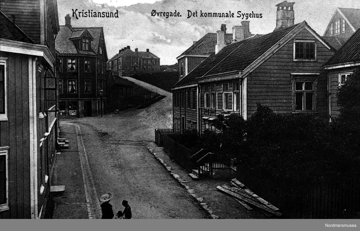 Kristiansund Øvre gate = Storgata med sykehusbakken barn leker Det