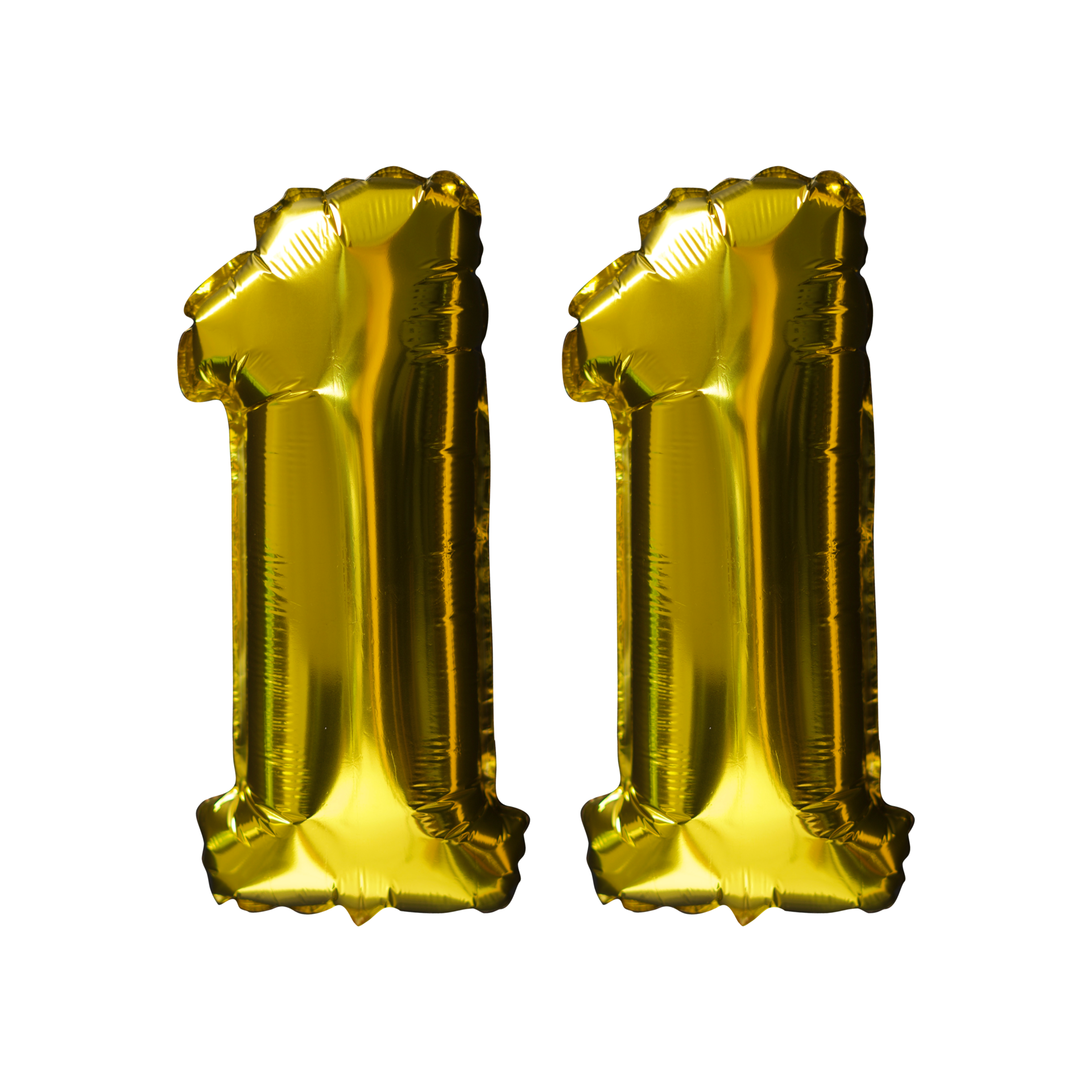 Дизайн логотипа 11 летия с золотым цветом и векторным шаблоном логотипа