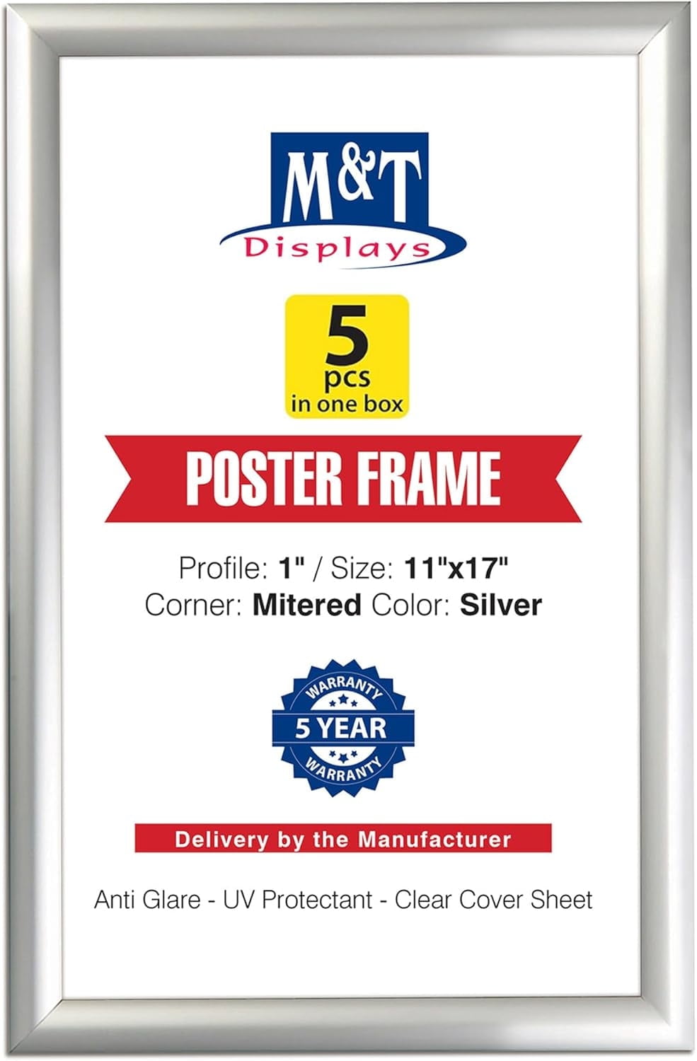 M T Displays 11x17 Snap Poster Frame Silver Aluminum Picture Photo
