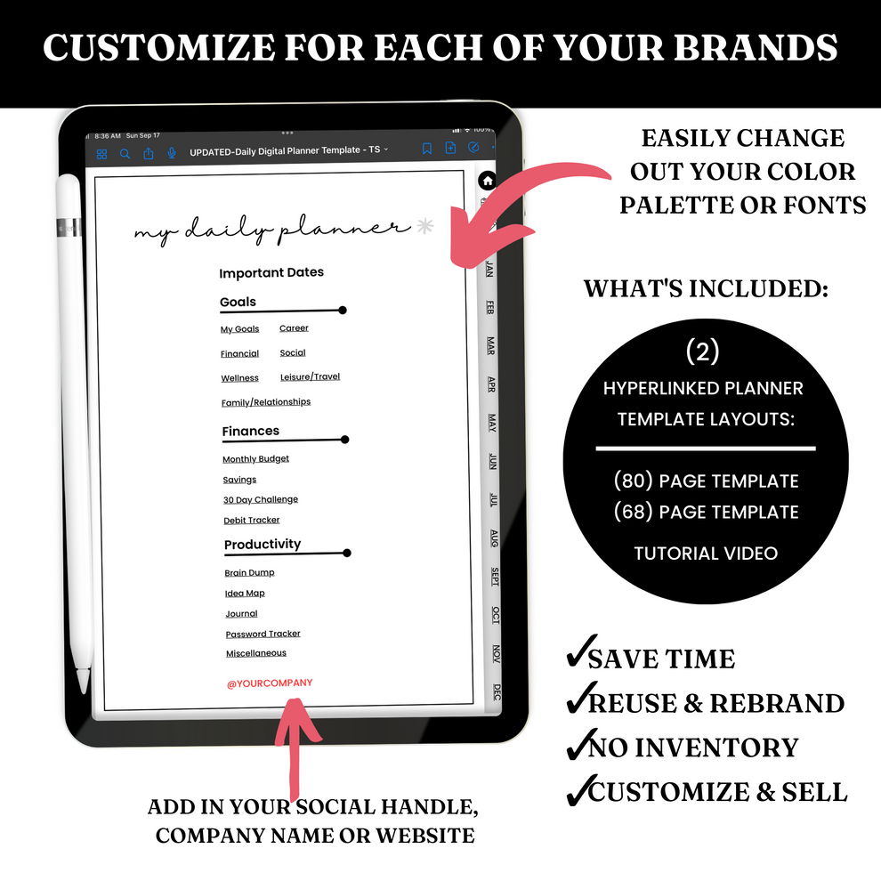 Undated 12 Month Digital Planner Template PLR Tawana Simone