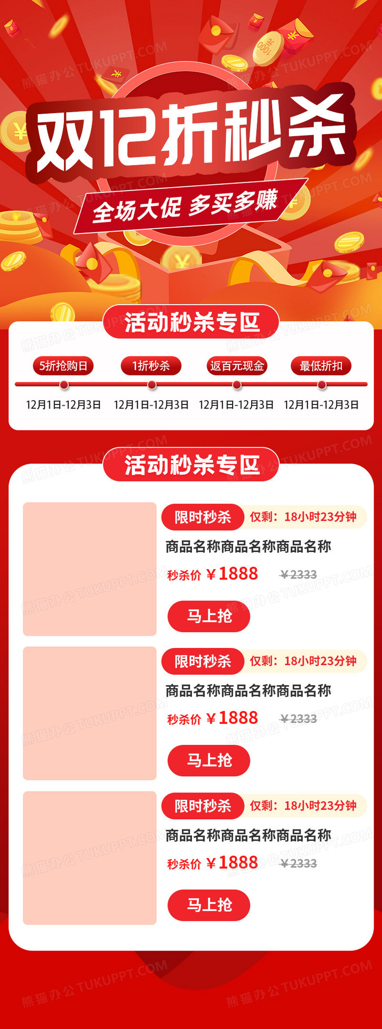 红色喜庆双12折秒杀1212全场促销活动秒杀手机ui长图双十二设计图片下载 psd格式素材 熊猫办公