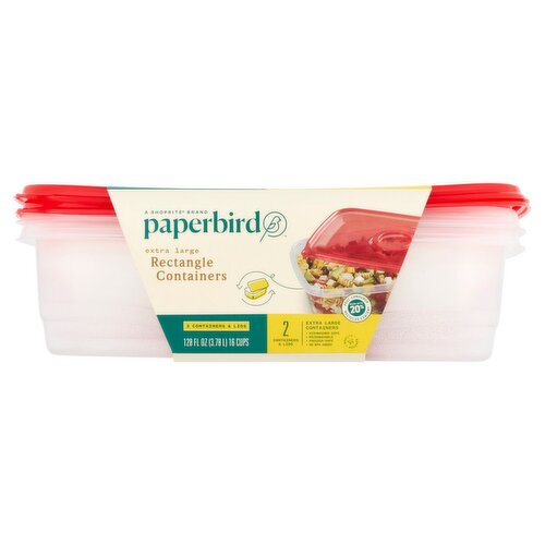 Paperbird Extra Large Rectangle 128 Fl Oz Containers Lids 2 count
