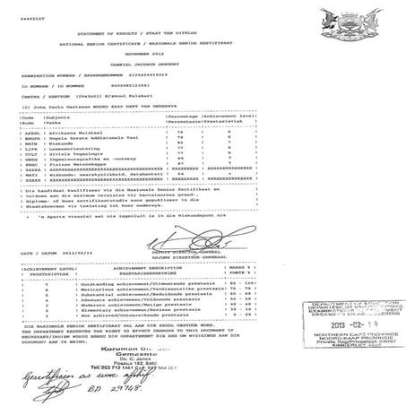 Gawie Matric Certificate PDF