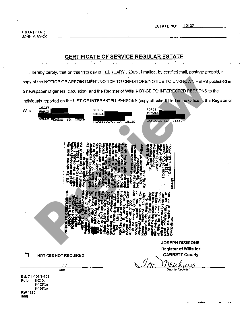 Maryland Notice to Interested Persons US Legal Forms