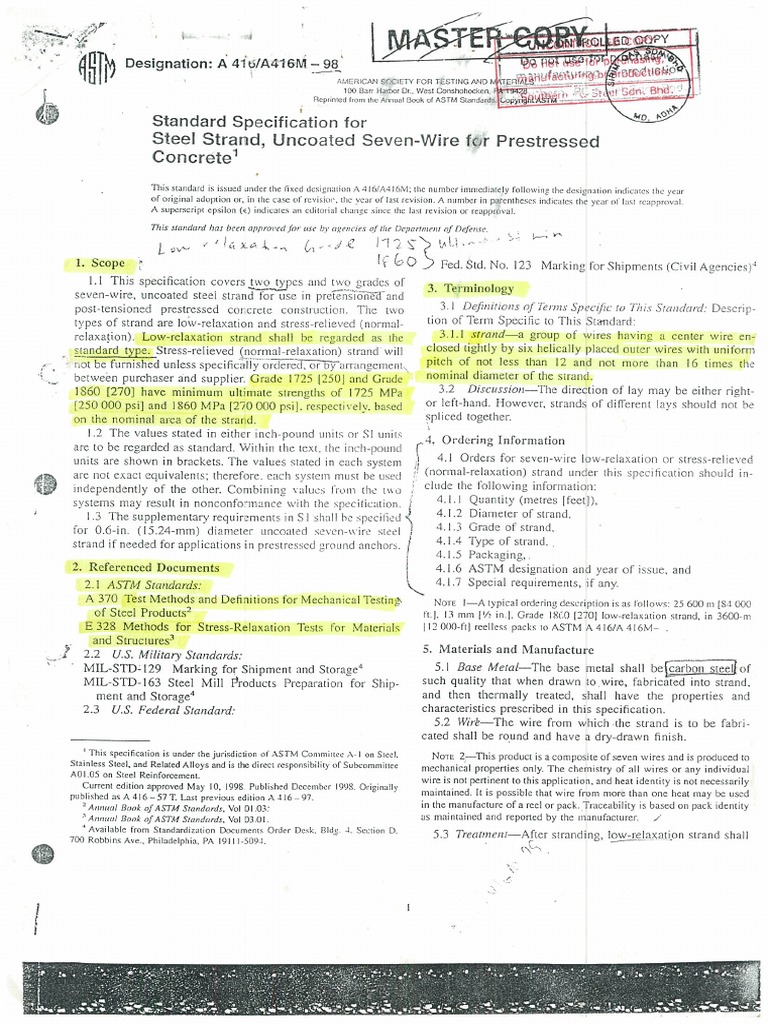 ASTM A 416 A416M 98 Standard Specification For Steel Strand