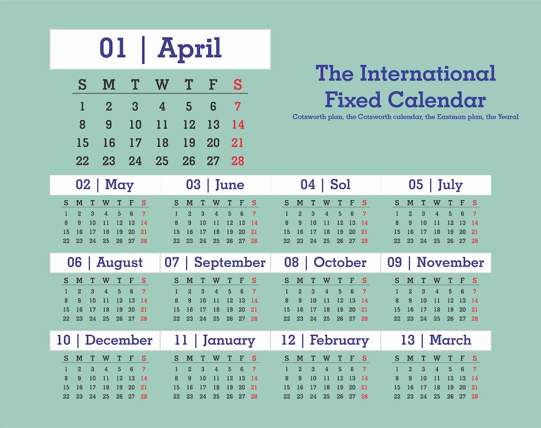 13 month 28 day Printable Calendar: Fresh Design (SVG/PDF/PNG) Etsy