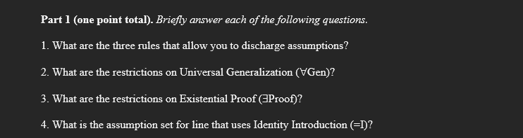 Part 1 (one point total) Briefly answer each of the Chegg com