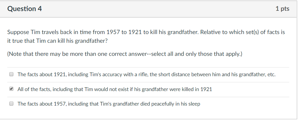 Question 1 pts Suppose Tim travels back in time from Chegg com