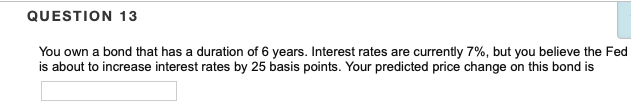 Solved QUESTION 13 You own a bond that has a duration of 6 Chegg com