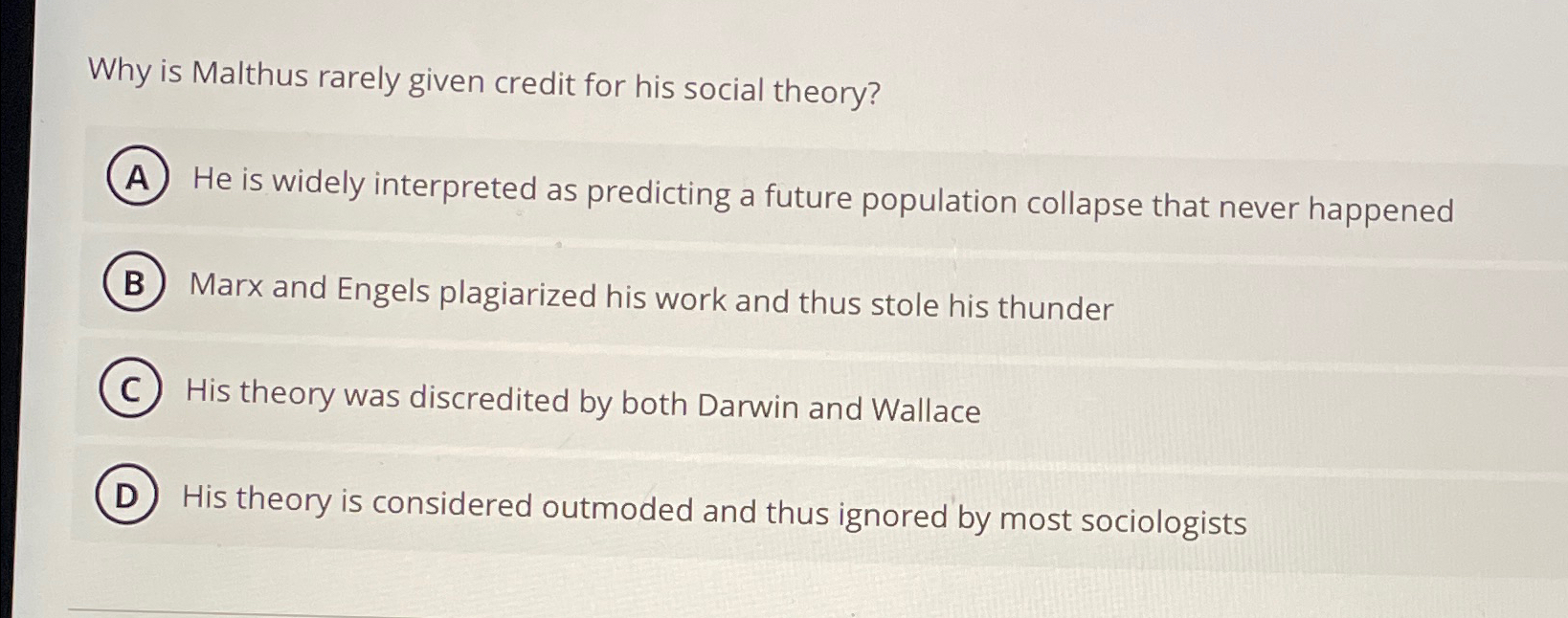 Solved Why is Malthus rarely given credit for his social Chegg com