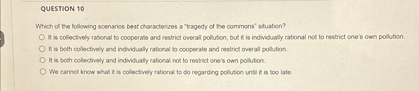 Solved QUESTION 10Which of the following scenarios best Chegg com