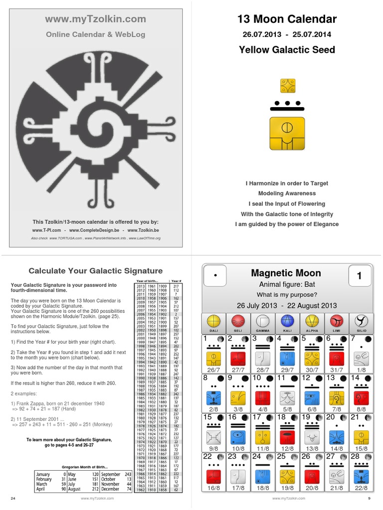 13 Moon Calendar: Yellow Galactic Seed Download Free PDF Moon Sun