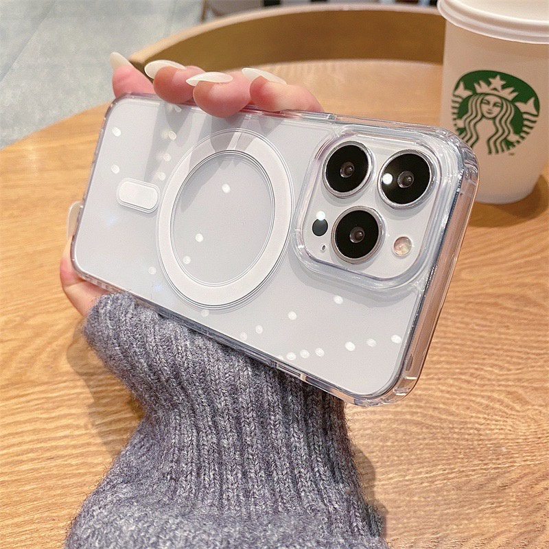 Magnetic Circle Wireless Charging Clear Soft Case for iPhone 14 15 Plus