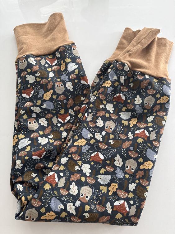Handmade Softshellhose Gr 140 mit Füchse Eulen und Igel (Neu (gemäss